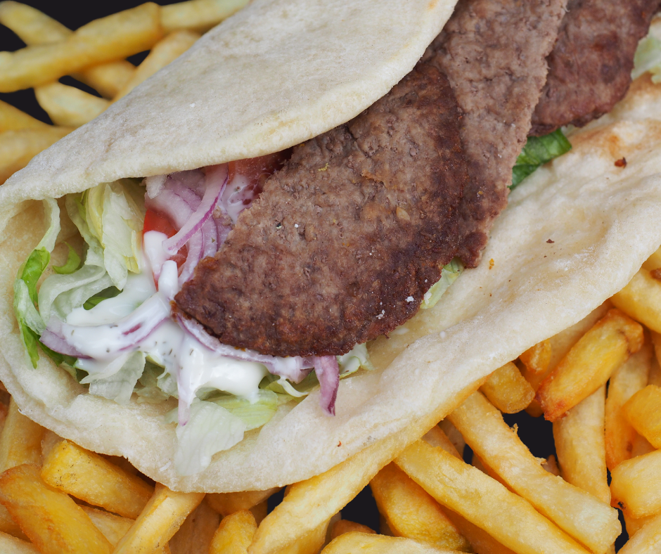 steak haché, salade, tomates et oignons avec une sauce de votre choix.